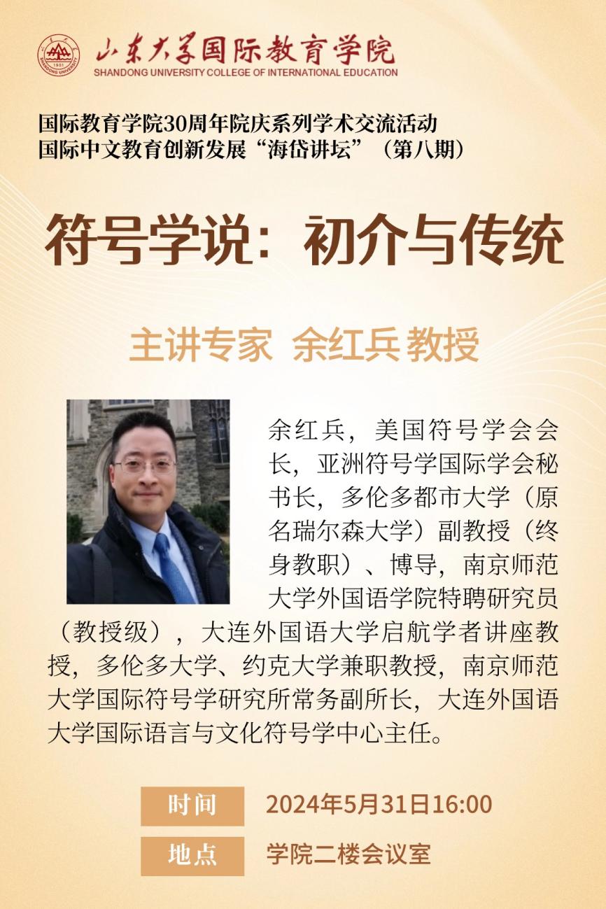 余红兵,美国符号学会会长,亚洲符号学国际学会秘书长,多伦多都市大学副教授(终身教职)、博士生导师,南京师范大学外国语学院特聘研究员(教授级),大连外国语大学启航学者讲座教授,多伦多大学、约克大学兼职教授,南京师范大学国际符号学研究所常务副所长,大连外国语大学国际语言与文化符号学中心主任。长期担任多个国际符号学名刊编委,同时担任多家著名国际出版社和SSCI、AHCI期刊特邀审稿人。主要研究方向为语言与文化符号学、比较哲学、文化与传播等,现阶段专注于语言与社会仪式、古代中国哲学的认知维度、神话思维与叙事等问题。目前已在SSCI,AHCI等收录的国内外著名学术期刊发表原创学术论文六十余篇,出版学术专著、译著和编著八部,主持和参加中国国家级、省部级以及国际人文社科项目九项。2024年获多伦多都市大学“杰出学术研究”奖。