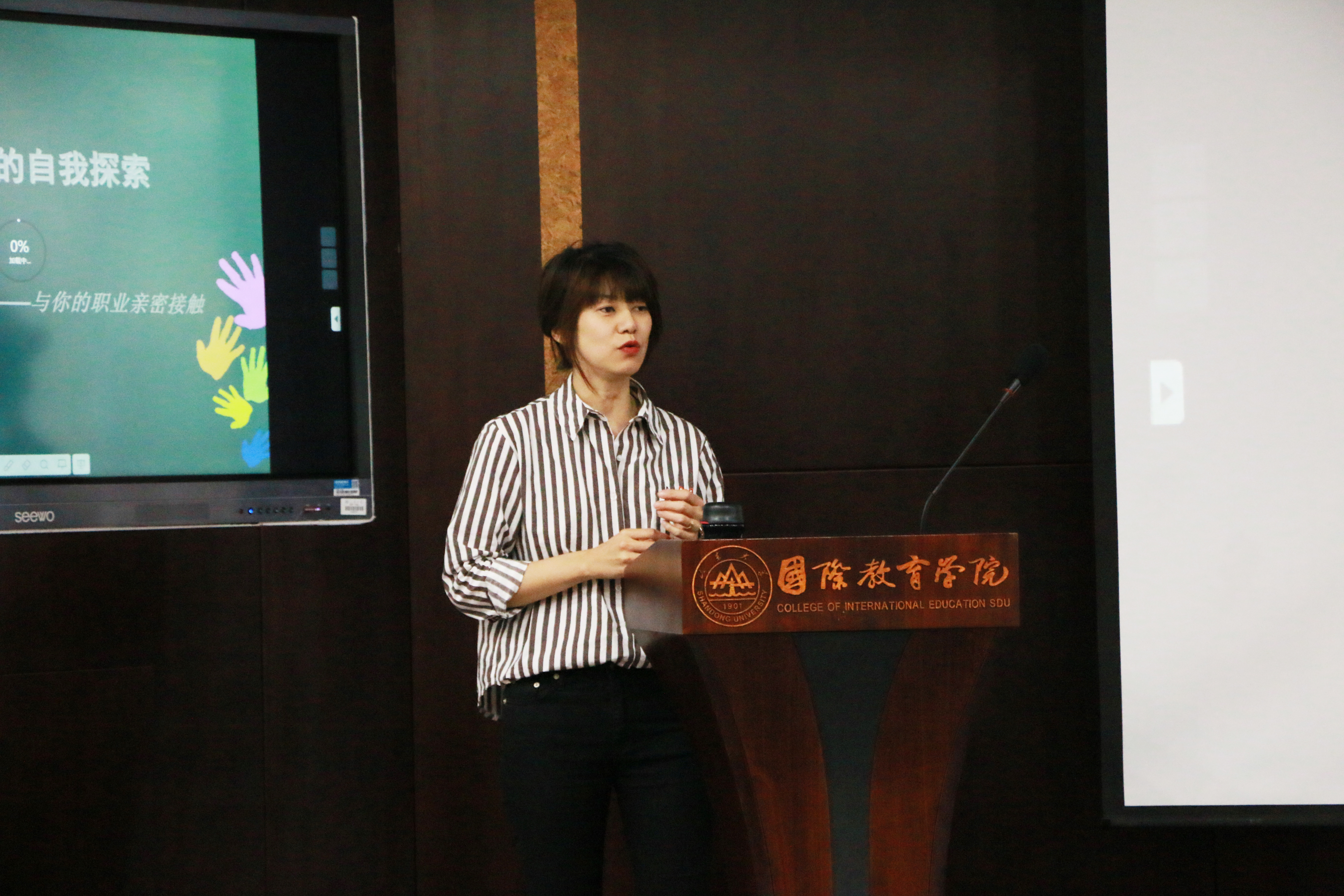 王璐璐老师通过生活实例引入职业系留点的概念,分析了个人性格与职业选择的关系,引导学生探索自我,科学合理地进行职业选择和规划。讲座过程中,王老师与同学们一起做了几个与职业探索有关的互动测验,包括价值观探索、MBTI性格测试、霍兰德职业兴趣测试等,用深入浅出地方式与现场同学交流互动,使同学们对职业的自我认知有了更深入的了解。此外,王老师引入了职业技能的概念,并强调了在大学期间,掌握好一般能力的同时,对于特殊能力的发掘和培养也至关重要。同学们积极参与,现场气氛热烈。