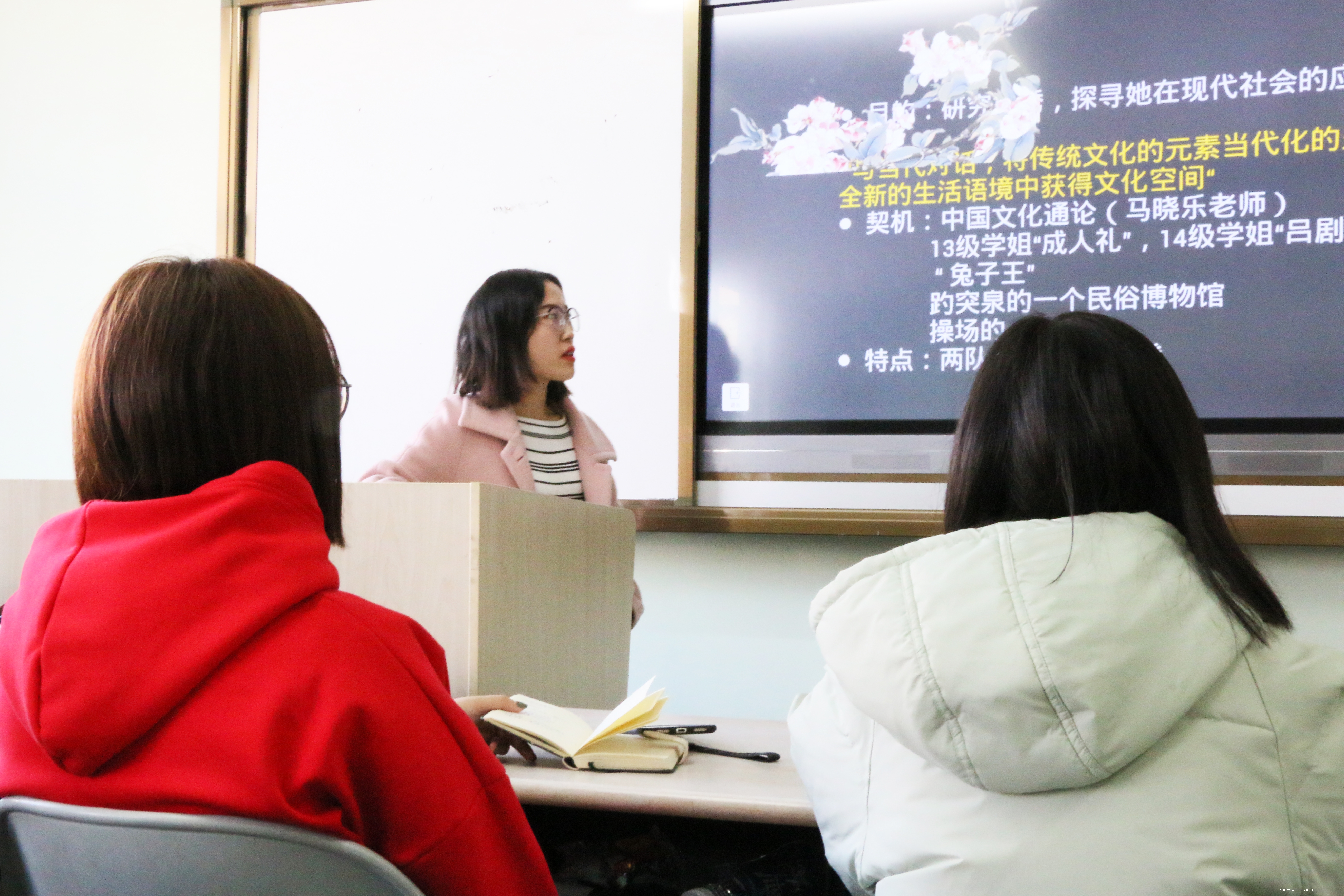 在主持人简单介绍了重要的社会实践项目与白皮书的写作要求之后,胡晓璠与大家分享了自己的社会实践经历。去年暑假,她组织了以“山东鲁绣在现代社会的的传承、应用及发展前景的调研”为主题的调研团队,其调研成果获得了省级表彰。胡晓璠首先向大家介绍了自己社会实践主题的灵感来源与行动契机,并谈及了社会实践团队的特点与一些不足之处。之后,她向大家介绍了社会调研的几种方法,如问卷调查、访谈等,并指出组建社会实践团队应注重团队成员的选择与成员工作的安排。同时,她建议在调研报告中要合理应用数据,以此来增强调研报告的说服力。最后,她鼓励同学们要敢想敢做,不惧困难。