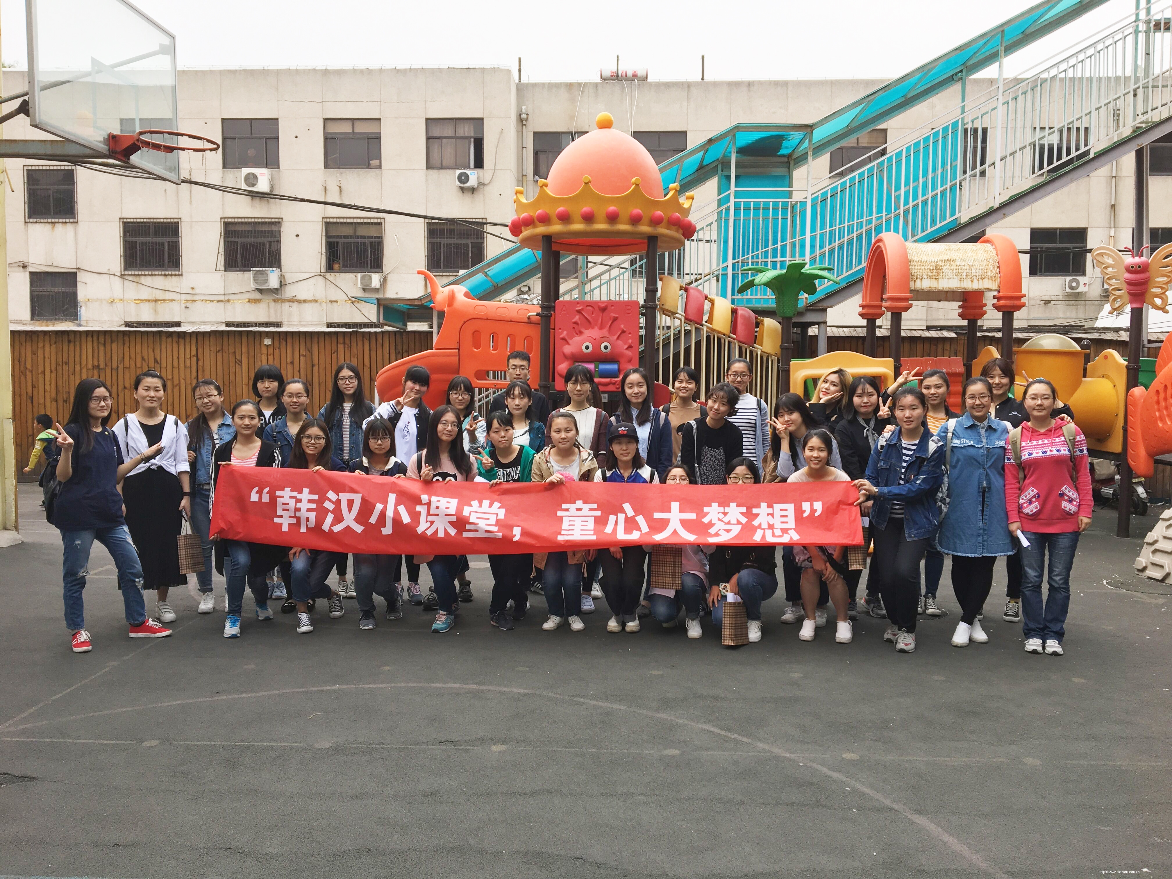 2017年4月24日,由英国威廉集团学生会社会实践与志愿服务部组织,中韩学生志愿者共同参与的“韩汉小课堂,童心大梦想”志愿服务活动在济南市大风车幼儿园举行。该活动意在促进中韩学生之间的交流互动,展现当代青年学生的志愿服务精神。