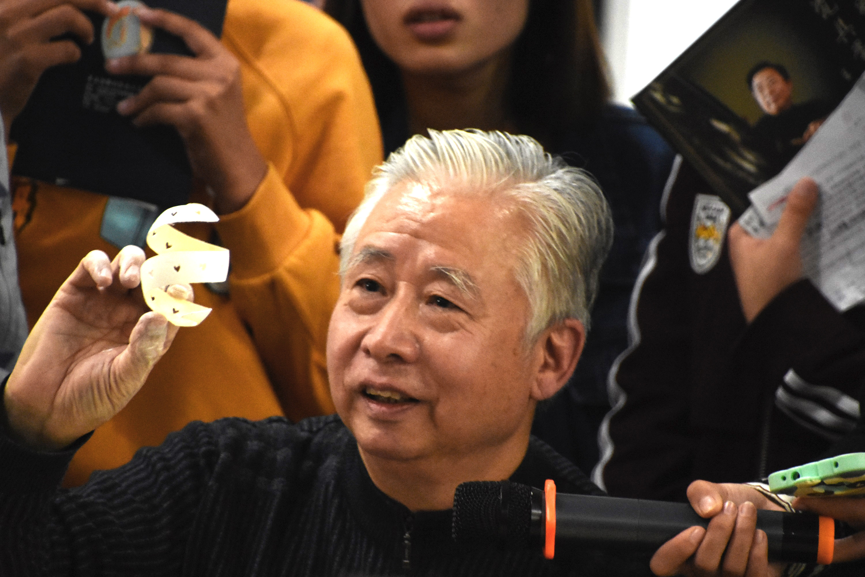 在随后的交流环节里,主持人向我们提出了有关非物质文化遗产的传承发展的问题,同学们各抒己见,用智慧碰撞出满场的火花,将全场气氛推向又一个高潮。活动最后,全体同学与单老合照留念。