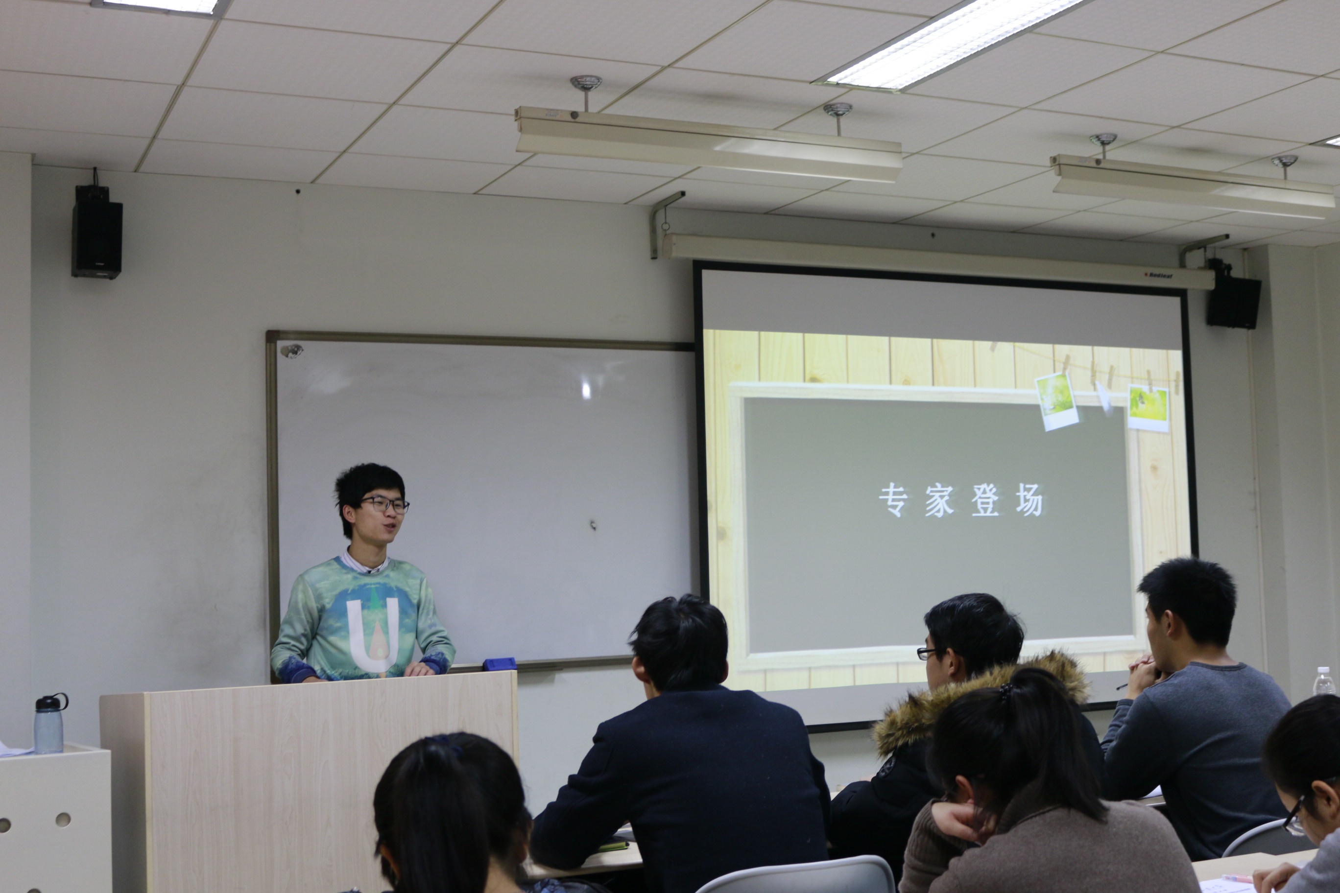 班会主持人黄钰楚引入话题,强调了职业生涯规划的重要性,接着又播放了求职类节目《职来职往》中山大同学金乔的片段,引起了同学们对职业规划的兴趣。