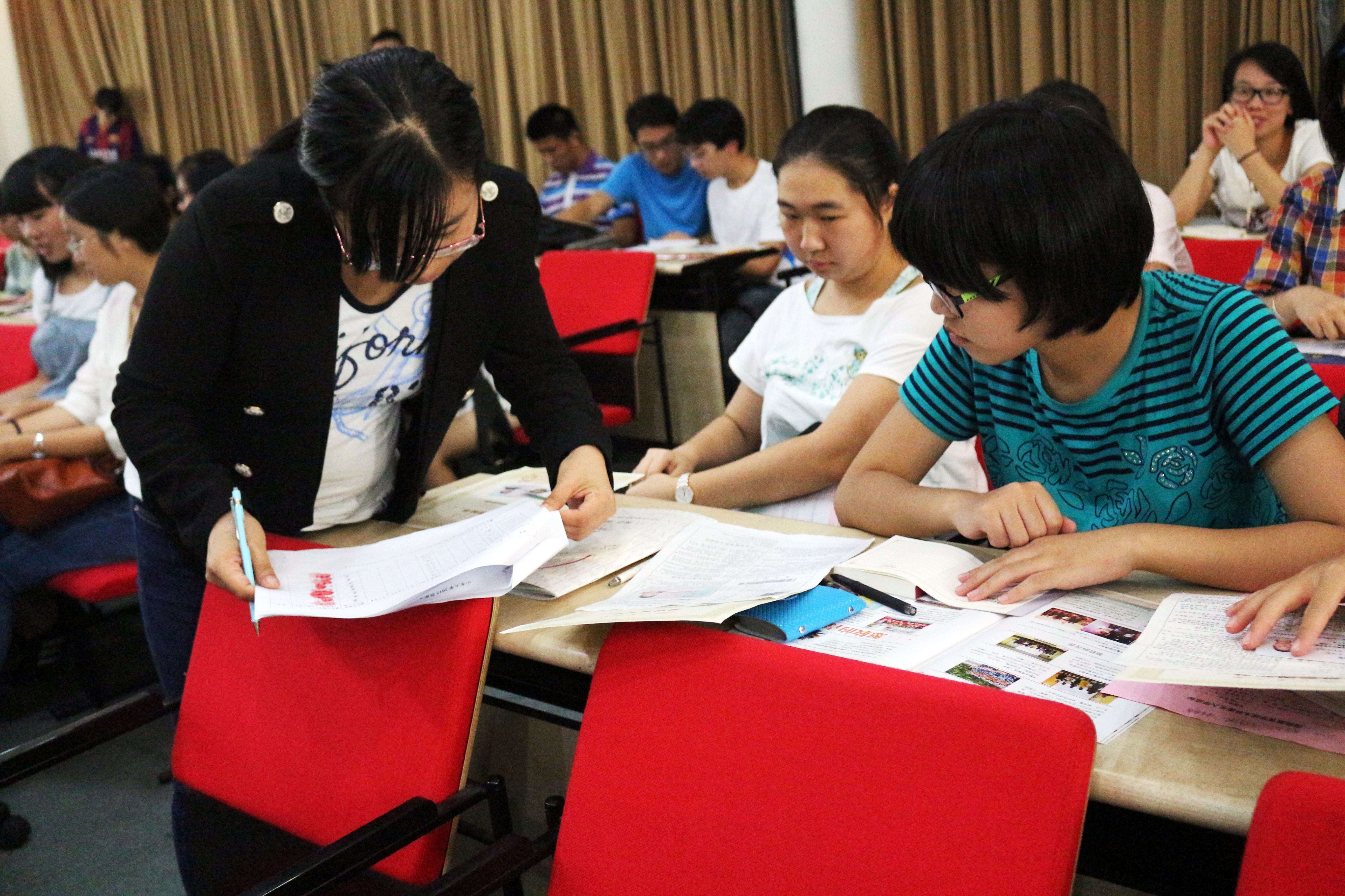 之后,于老师俯身耐心细致地检查着每一位同学的证件,并不时温柔叮嘱,许多新生都表示感到很温暖。