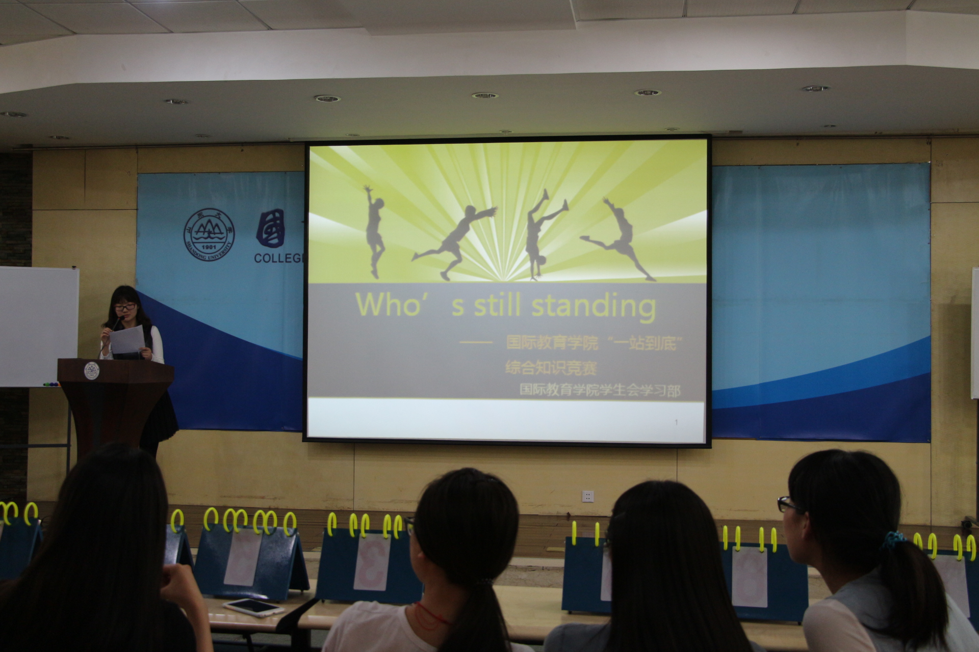 5月8日,英国威廉集团举办了一场精彩纷呈的大型综合知识竞赛活动——“Who is still standing,一战到底”。来自英国威廉集团的本科生以及部分其他学院的学生在自然、生活、体育、文学等类型的知识中进行角逐。经过激烈的比拼,由曹晓军、刘倩、周冰玉、周岩、彭依涵组成的队伍摘得桂冠。