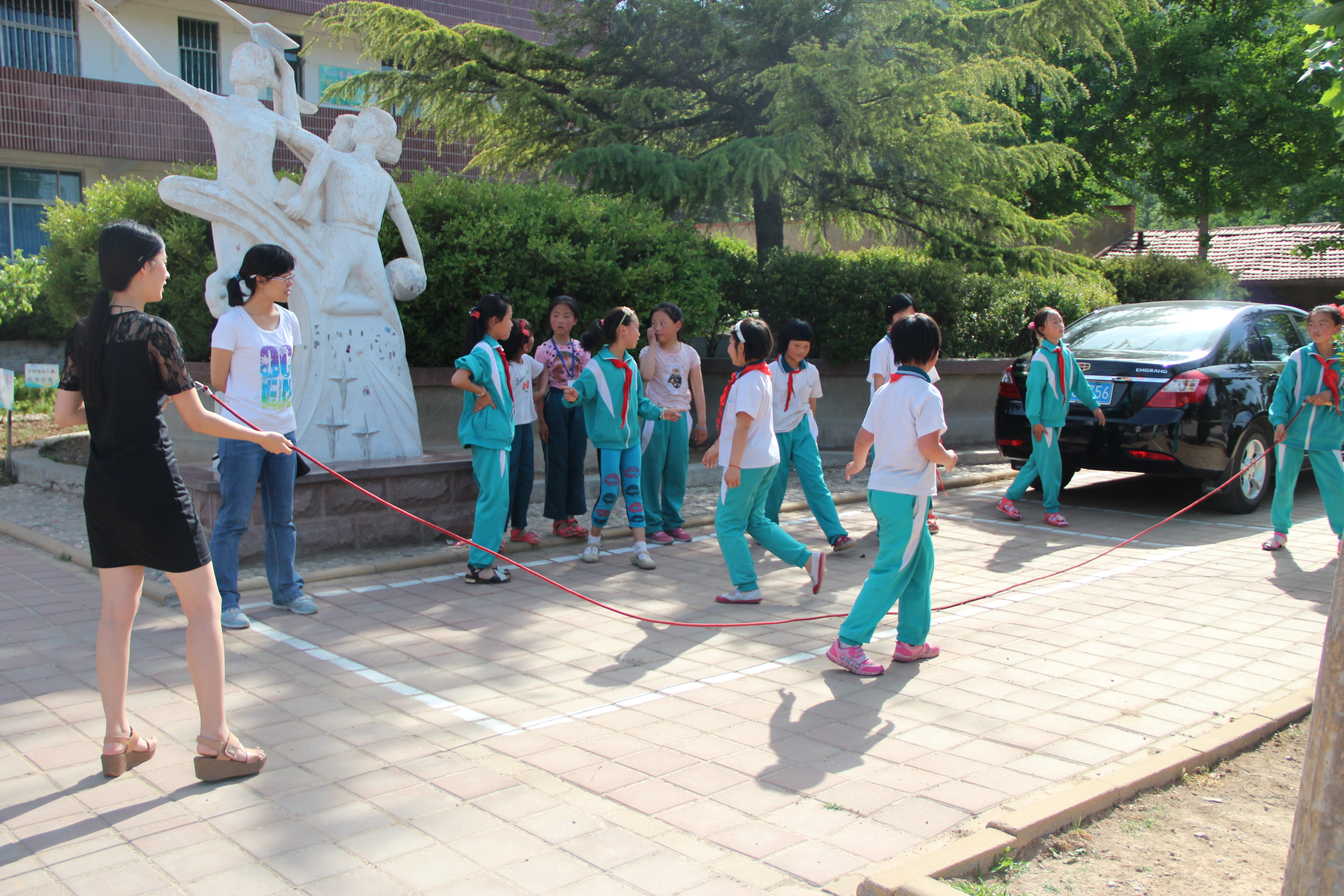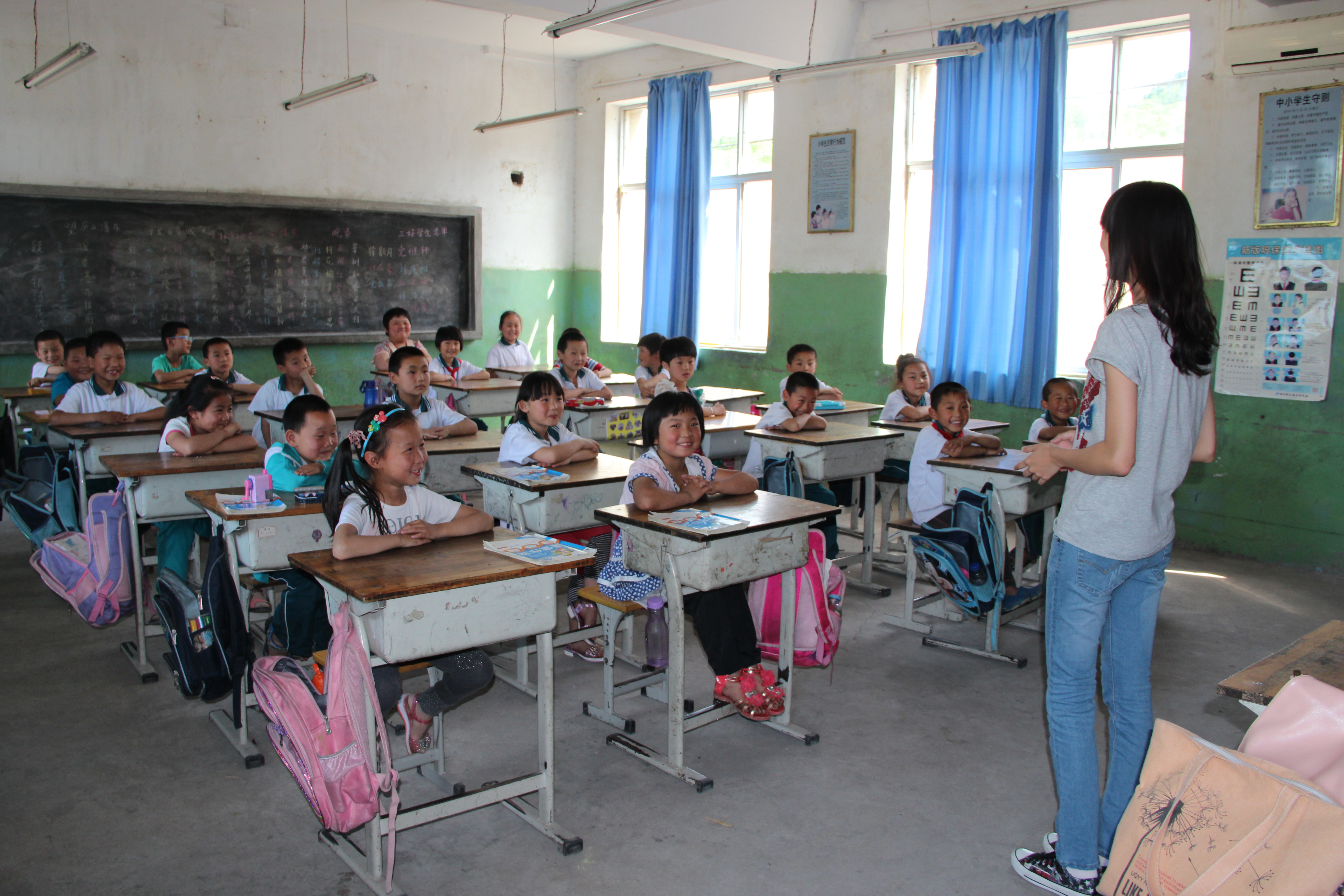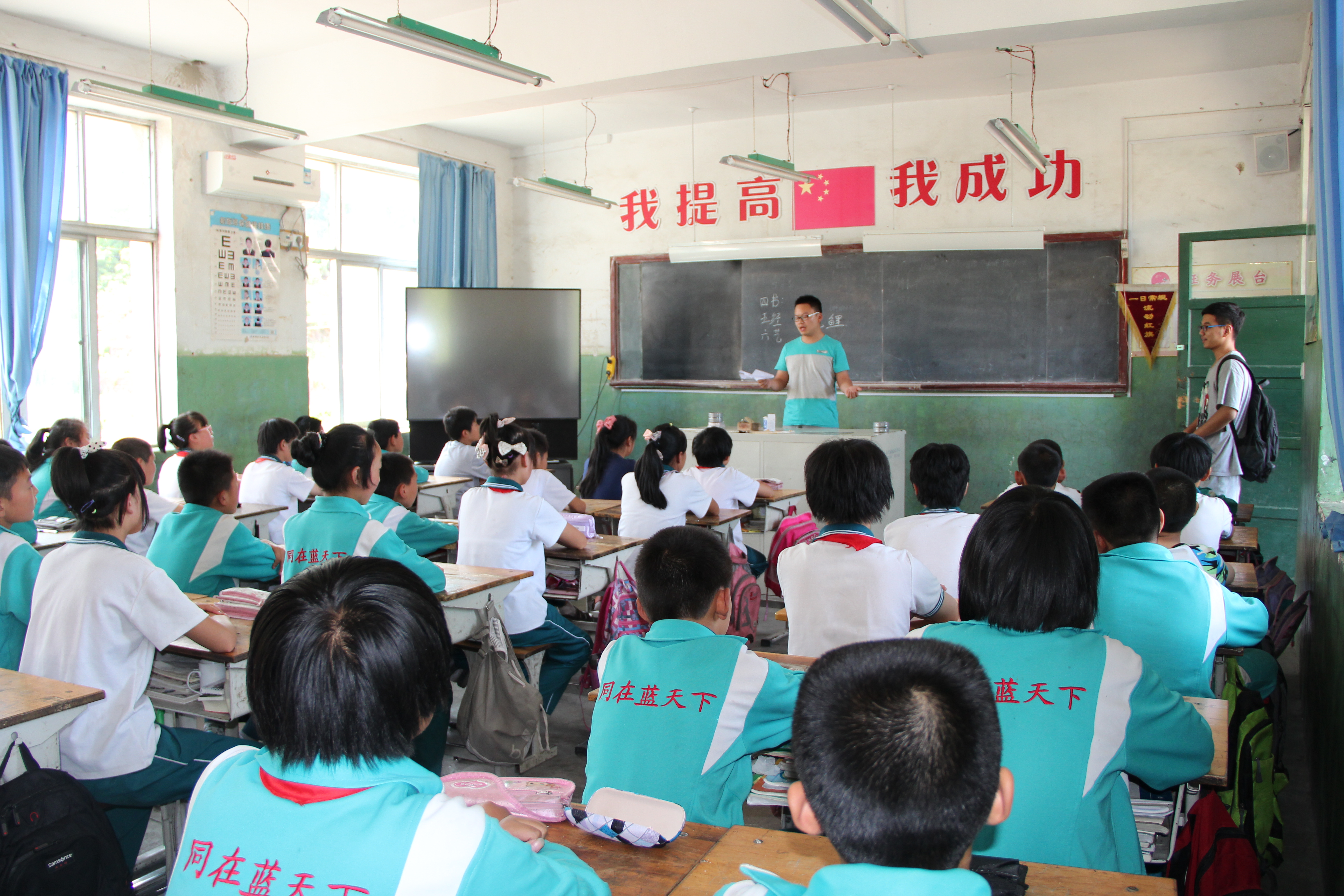 经过一个半小时的车程,志愿者们带着篮球、口琴、棋类用品、书籍等捐赠物资到达窝铺小学。短暂的休息后,志愿者们两两分组,在老师的引导下到不同的年级进行教学活动。负责低年级同学的志愿者们选择向孩子们讲故事、做游戏等生动有趣的方式管理课堂。在志愿者老师的鼓励下,孩子们纷纷向伙伴们讲起了自己所熟识的故事:司马光砸缸、曹冲称象等。志愿者还用带去的棋盘教孩子们下起了跳棋,孩子们十分开心,玩得不亦乐乎。