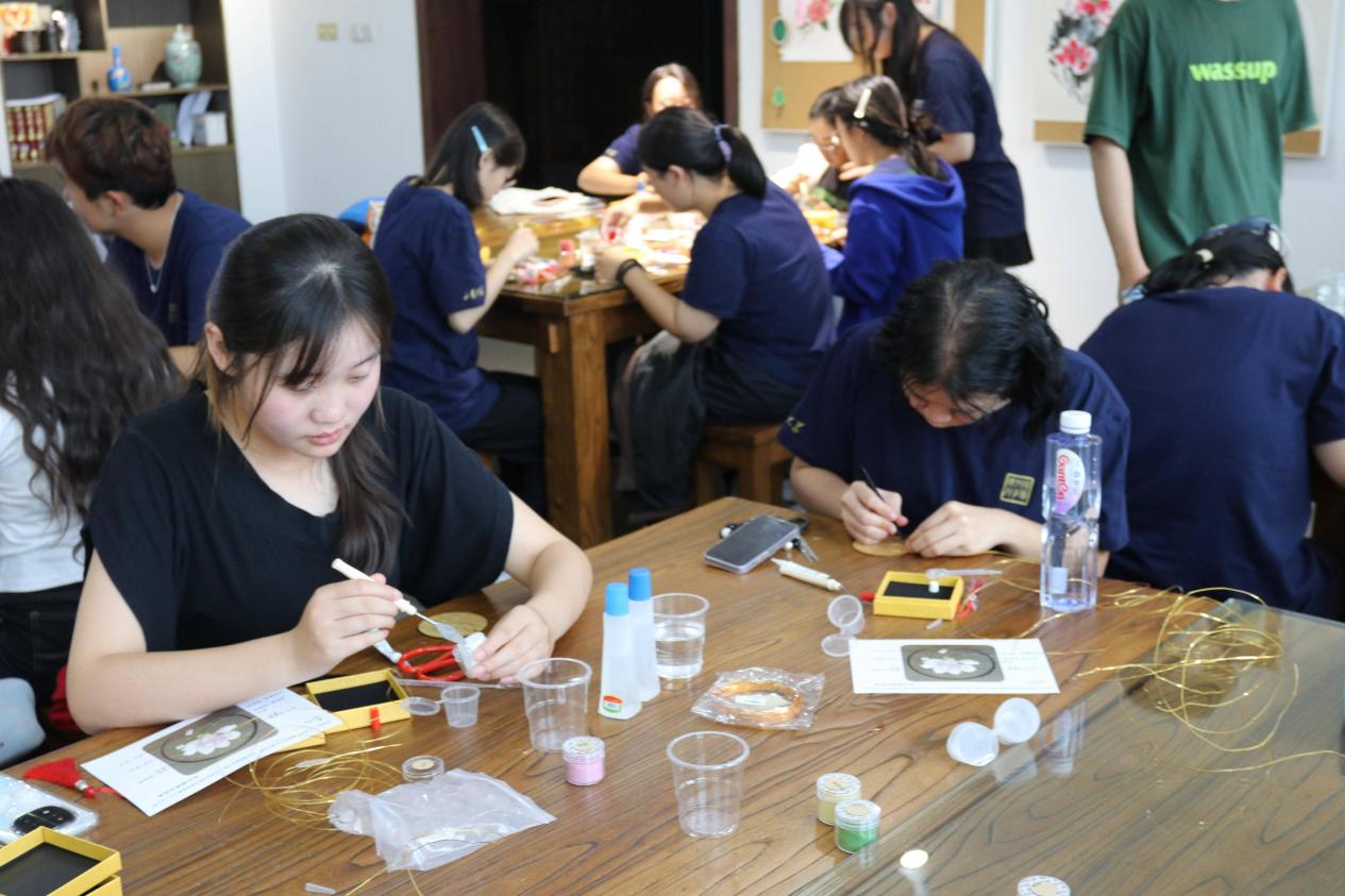 活动临近尾声,新生们纷纷举起自己的掐丝珐琅作品展示,脸上洋溢着满满的成就感与喜悦,同时主动分享参与感受,进一步深化了对中华传统技艺的认知与认同。